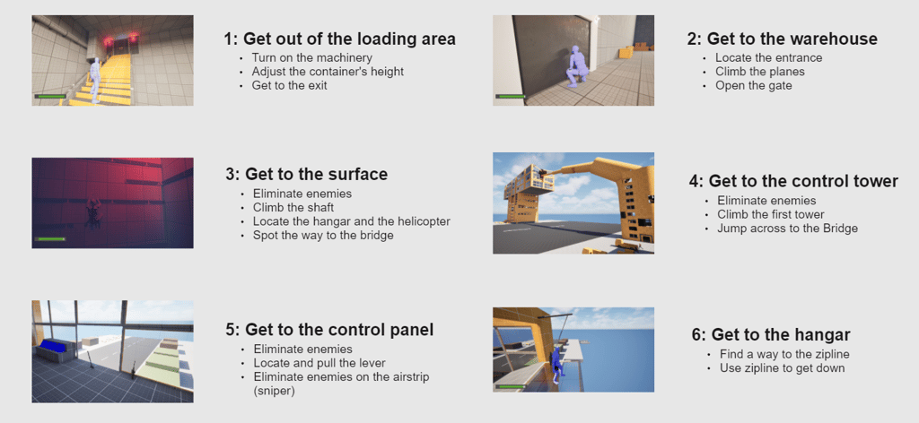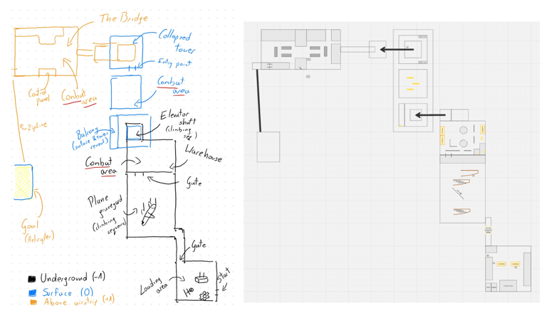 From the very start this level was about the way up through different layers of this aircraft. It was important to reveal story beats gradually and let the player explore the area and his surroundings in a steady pace.