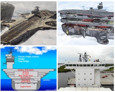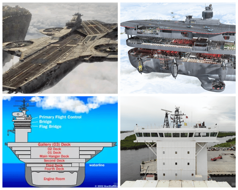 Real life aircraft carriers were used as reference for this level along with fictional ships. It was supposed to be a large industrial structure with clearly separated decks based on their purpose.
