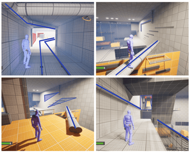 They can be spotted in many places across the map and in many forms. The idea behind them is to be easily visible for the player. They highlight the affordance of climbing hinting the player about potential action or path.