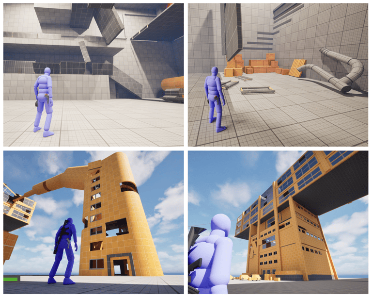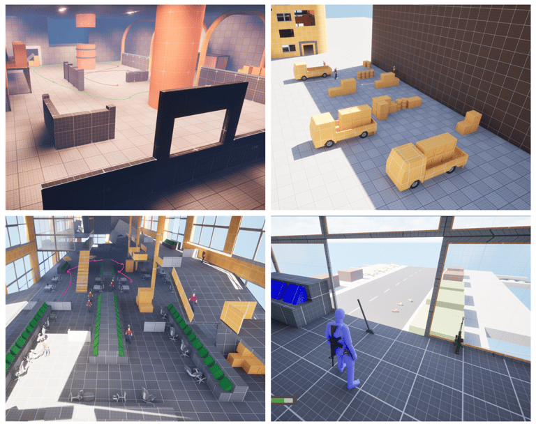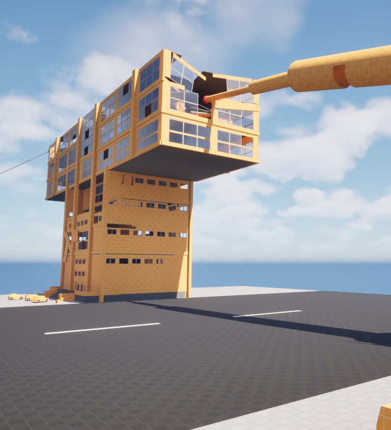 Level is set on board of imaginary futuristic airborne aircraft carrier. Everything is created and dictated by its industrial purpose. Spaces are intended for specialized staff and not civilians. The player should feel that with every step he takes.