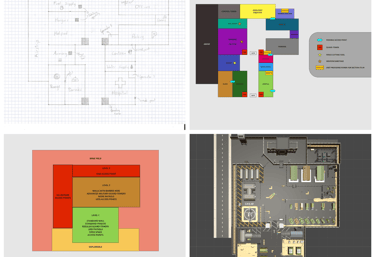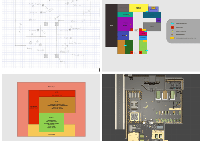The level not only allows different playstyles and paths but also highlights the objective and general direction. Layout, gates and different security levels were a crucial part of the design process
