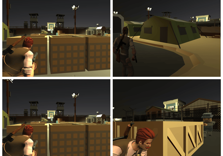 Infiltrating hostile military base. Short level which allows multiple paths and playstyles. action takes place during the night which combined with light and power unit added mechanic creates additional opportunities for the player