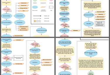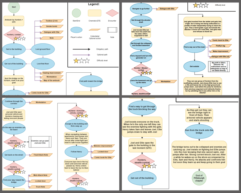 Breaking down, analysing and describing the design of Naughty Dog's game's Pittsburgh chapter including blockouts, flow charts and character development
